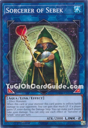 Text: | 2 Effect Monsters When this card or your monster this card points to inflicts battle damage to your opponent: You can gain that much LP. If a player gains LP, even during the Damage Step: You can make each player take 1000 damage. You can only use each effect of "Sorcerer of Sebek" once per turn. |